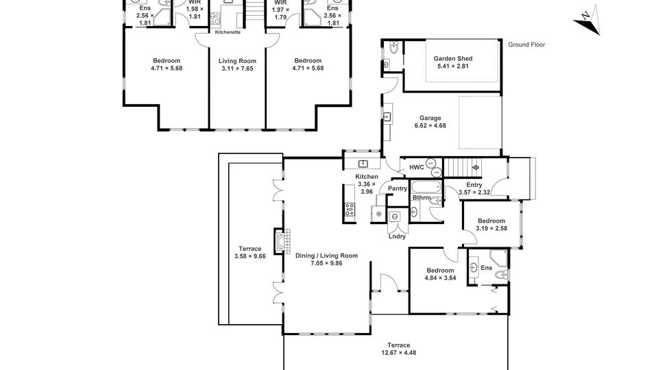 A separate 228m² cottage (own driveway) offers four bedrooms and four bathrooms; each level can operate independently - ideal for extended family, a caretaker/manager, or guest income.